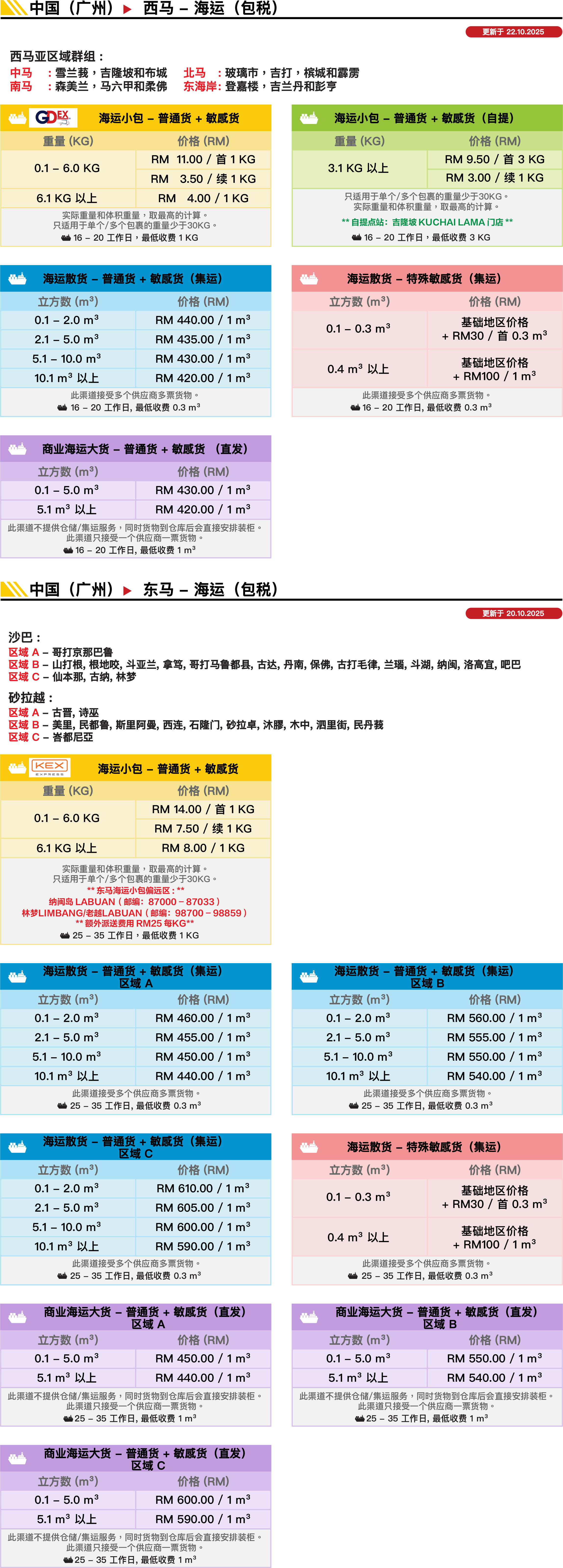 海运大货 ► 每立方限重500KG,否则运费按立方或重量计算,视何者为高。